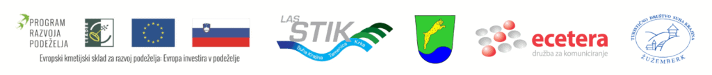 Še nekaj drobnega teksta. Nova turistična destinacija Suha krajina nastaja v okviru LAS operacije z naslovom Razišči, okusi in doživi Suho krajino skozi interaktivno, povezano in osebno izkušnjo naravne in kulturne dediščine (SKIN).